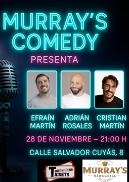 Imagina que estamos a fin de mes, que cobras tú pensión y que vas al supermercado y te topas con una oferta de 3x1, pues eso, que Adrián Rosales, Cristian Martín y Efraín Martín se han confabulado para hacer una noche de comedia con tres monólogos individuales y muchas ganas de hacer el gamberro.