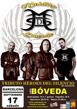 Maldito Duende llegarán por primera vez a Barcelona con un esperado concierto donde derrocharán toda su fuerza en el escenario recordando las canciones de la mejor banda de rock en español de la historia "HÉROES DEL SILENCIO".